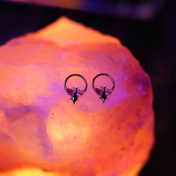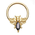 Gold titanium PVD plated 316L surgical steel with jewelled bee design.