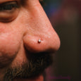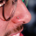 Surgical steel internally threaded labret with prong set gem. The gold colour is titanium PVD coating.