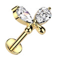 Surgical steel labret with stunning butterfly-shaped top with cubic zirconia gems.