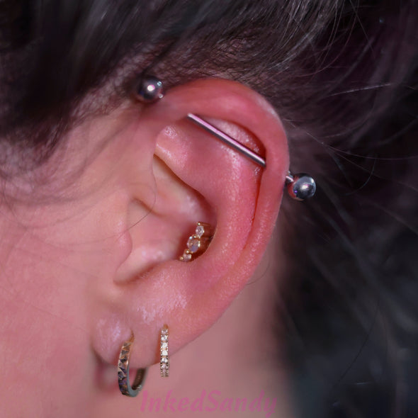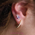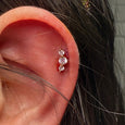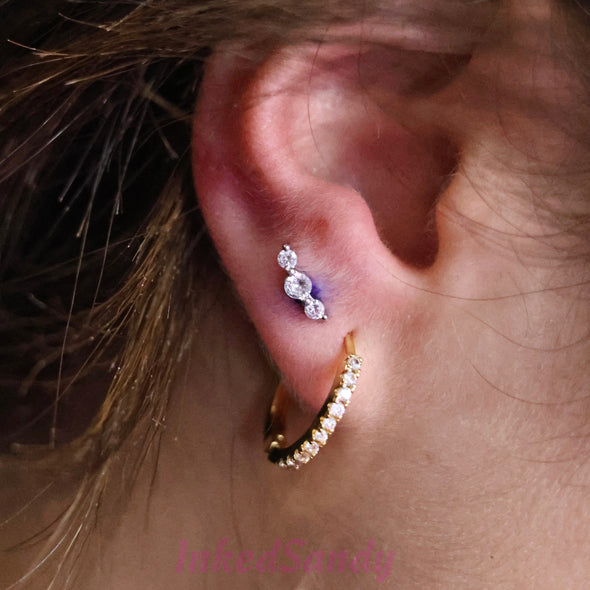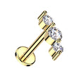 Surgical steel labret with classic 3 gem top with cubic zirconia gems.