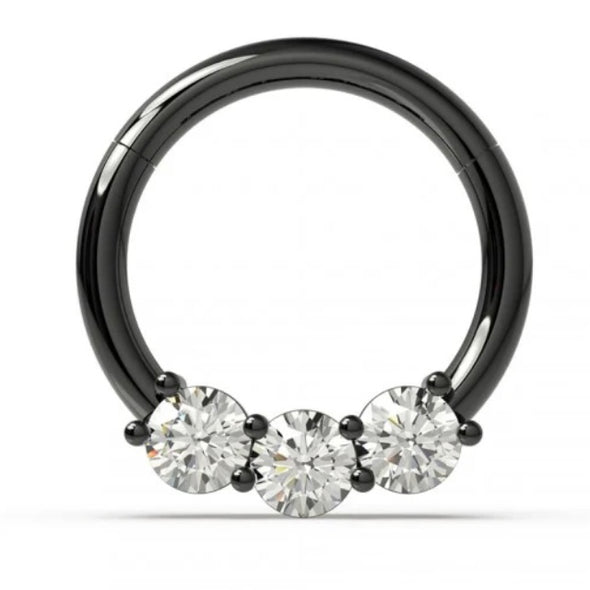 316L Surgical steel hinged segment ring with cubic zirconia. Great for septum or cartilage beautiful jewelled clickers look great in the dal, rook, snug, helix or septum.