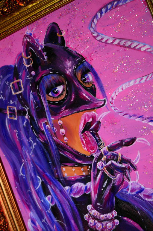 Introducing Sandy's New Neon Color Painting: Catwoman in a Latex Luxury Suit